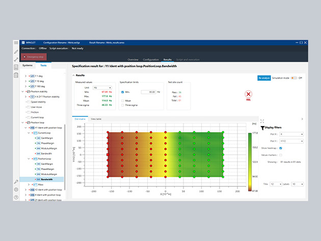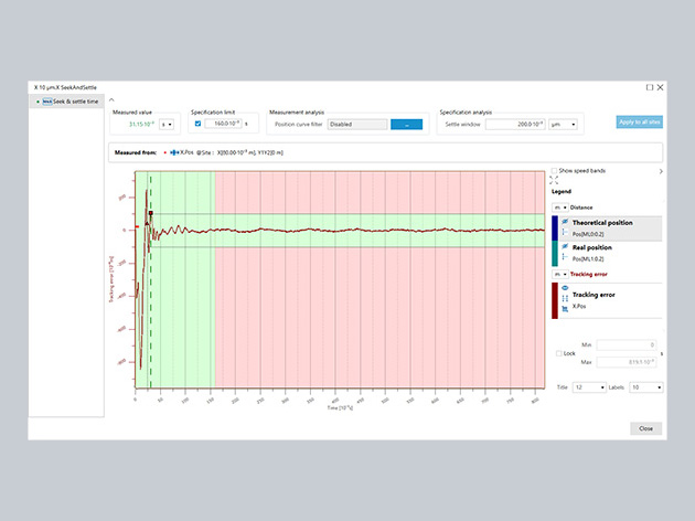 WINGLET enables the measurement and display of key motion specifications, such as Move & Settle and Jitter, across the entire workspace. It allows for easy tuning of control parameters and simulation of their effects, saving time during the fine-tuning phase.